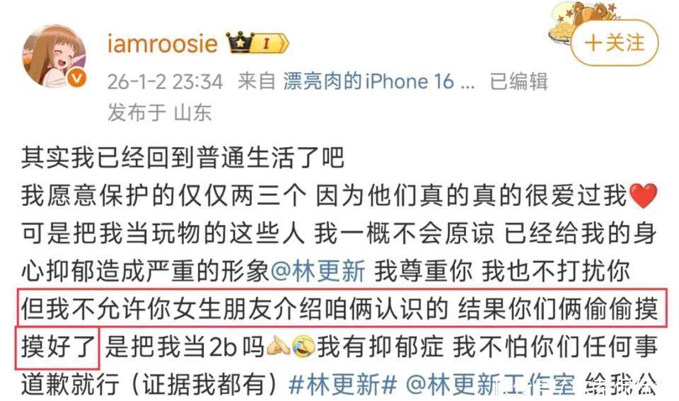 1月2日的深夜,娱乐圈又被搞了个“天翻地覆”。一位名叫iamrooise的女博主,突然在网络上大肆爆料,说自己和鹿晗、林更新、范丞丞、檀健次、张一山、黄明昊、周奇这些当红男艺人都有“私下联系”,还在粉丝群里甩出个重磅料:“王安宇和关晓彤在一起”。这话一出,网友直接炸锅,热搜瞬间爆了。